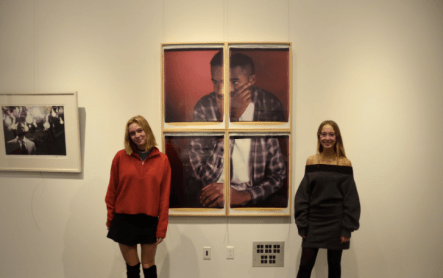 “Whatever you say reverberates, whatever you don’t say speaks for itself, so either way you’re talking politics.” This is the truism projected onto Jenny Holzer’s piece of art, which is the first piece one sees when walking into the Arts and Activism exhibit in the Von Auersperg gallery. The exhibit was curated by Lily Louis `18, and Lulu Fanjul `18 (pictured at left with Dawoud Bey’s piece Chevies II), with a focus on gender and race issues, true to the spirit of Martin Luther King Day.To express the theme of power within society, the show features three walls, each exhibiting a different theme.The first wall presents the individual, emphasizing the invisible and the objective to give those who are unheard a voice, making the invisible visible. This wall is positioned to face the one that conveys community, to symbolize the coherence and mirroring of these two aspects of human life. This placement is meant to portray how humans interact with their communities.Finally, the third wall reflects power, and is connected to both the individual and the community, implying that the government does not always use its power to cater to the greater needs of society and the individuals within it.According to Louis, “All the walls are aimed at the idea that every single person is part of a greater community and each person has their own significant role within that community.”